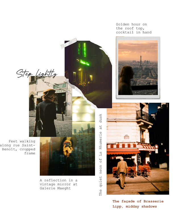 “At dusk, I walk down rue de Seine with no plan. Just the sound of the pavement and the lights in the galleries. That’s where Paris feels like a poem.”